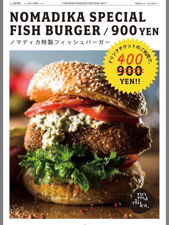 当日はアコフェス限定のフィッシュバーガー(今年はカサゴ!)を定価900円にて販売しております。